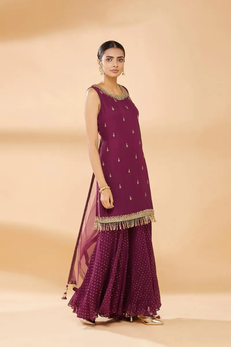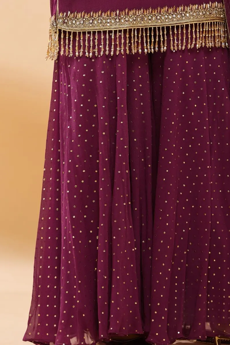 Work: Kundan, Cutdana, Swarosvki, Bead, Dabka, Crystal Drops, Tradional Border and Butties Allover with Heavy Crystal Tassels at border