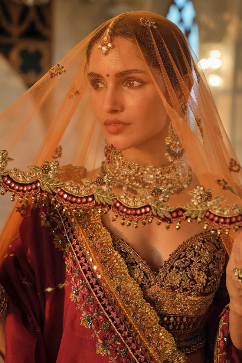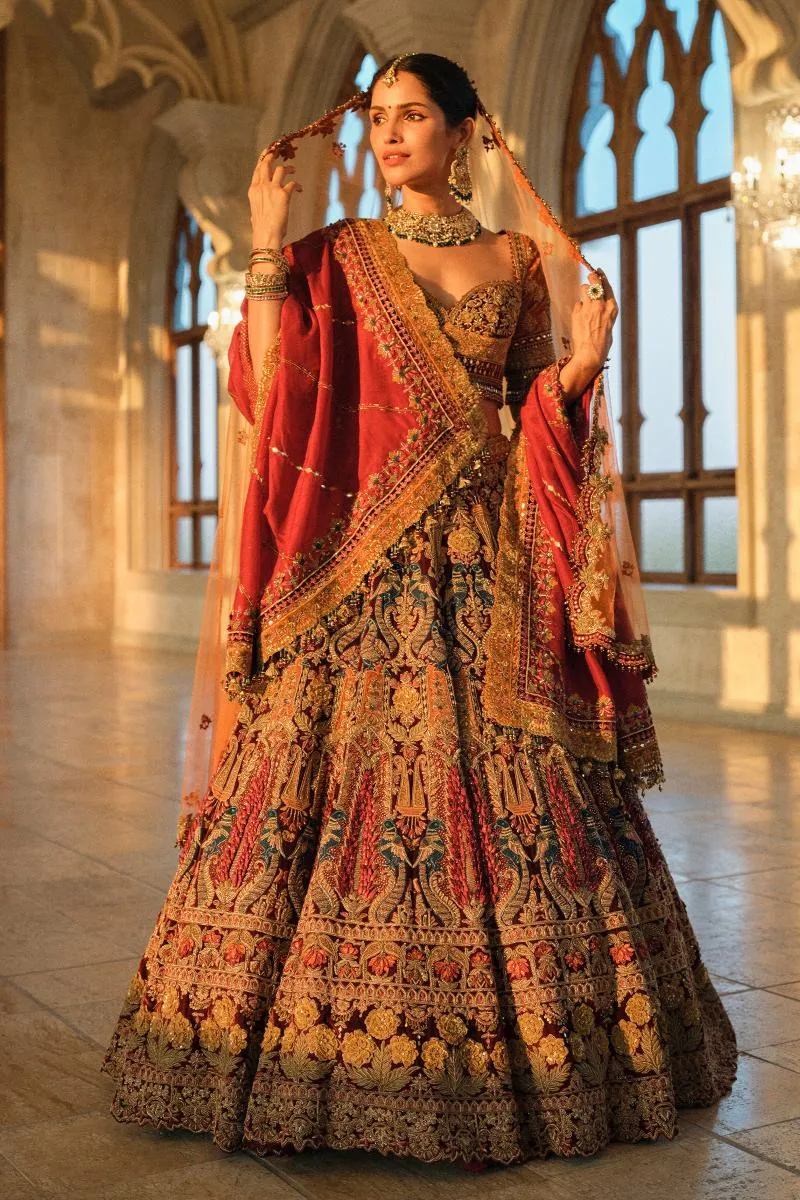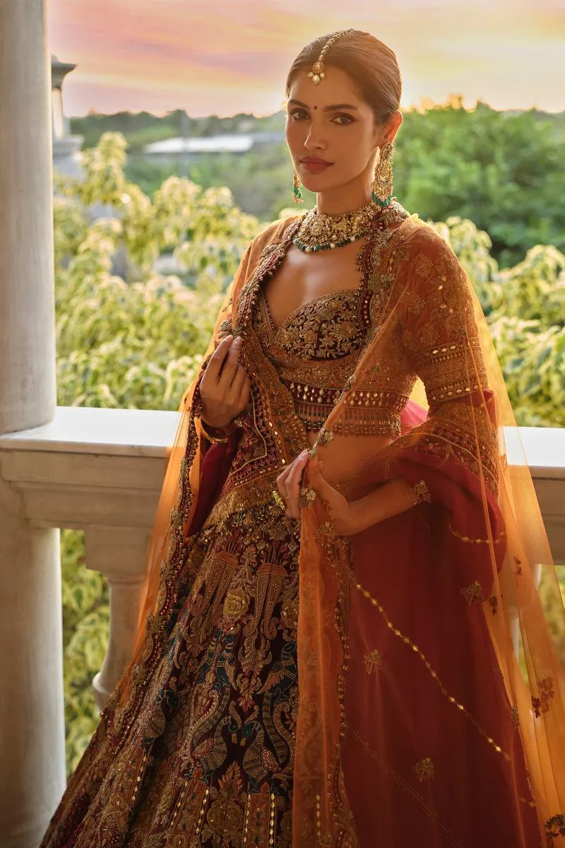Wine Velvet Lehenga